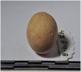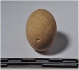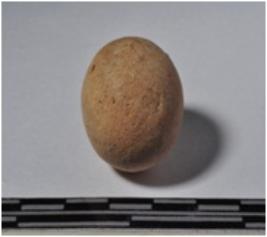 | Description / विवरण | A terracotta sling ball, round in shaped and rough surface. |