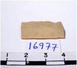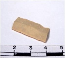 | Description / विवरण | A fragment of a rectangular shaped chert blade showing sharp cutting edges having smooth surface and triangular section. |