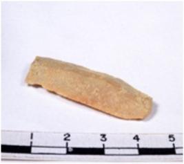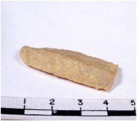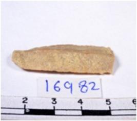 | Description / विवरण | A fragment of a rectangular shaped chert blade showing dorsal side with sharp cutting edges having smooth surface and triangular section. |