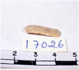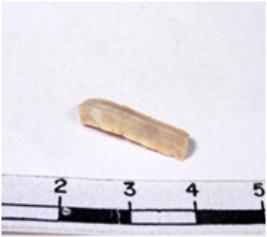 | Description / विवरण | A fragment of a rectangular shaped chert blade showing dorsal sides with sharp cutting edges having smooth surface and triangular section. |