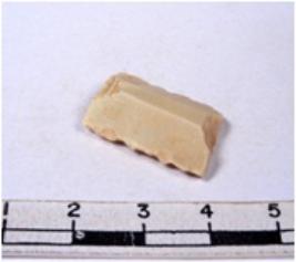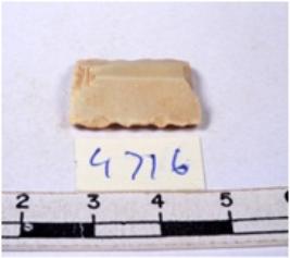 | Description / विवरण | A fragment of a rectangular shaped chert blade showing dorsal sides with sharp edges having smooth surface and triangular section. |