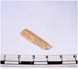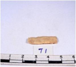 | Description / विवरण | A fragment of a rectangular shaped chert blade showing dorsal sides with sharp edges having smooth surface and triangular section. |