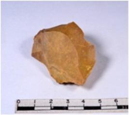 | Description / विवरण | A fragment of a rectangular shaped chert blade showing dorsal sides with sharp edges having smooth surface and triangular section. |
