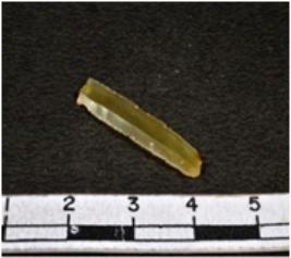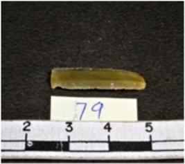 | Description / विवरण | A fragment of a rectangular shaped chalcedony blade showing dorsal sides with sharp edges having smooth surface and triangular section. |