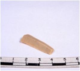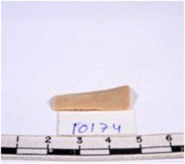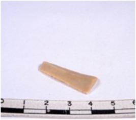 | Description / विवरण | A fragment of a rectangular shaped chert blade showing dorsal sides with sharp edges having smooth surface and triangular section. |