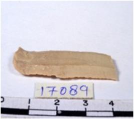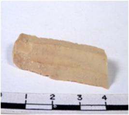 | Description / विवरण | A fragment of a rectangular shaped chert blade showing flat sides with sharp cutting edges having smooth surface and uneven section. |