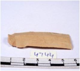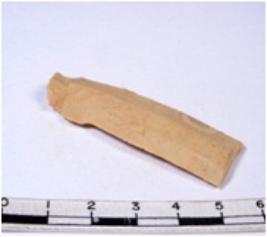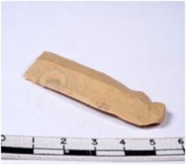 | Description / विवरण | A fragment of a rectangular shaped chert blade showing dorsal sides with sharp edges having smooth surface and triangular section. |