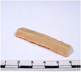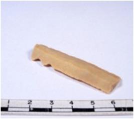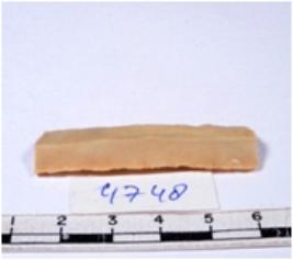 | Description / विवरण | A fragment of a rectangular shaped chert blade showing dorsal sides with sharp edges having smooth surface and triangular section. |