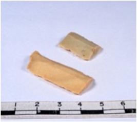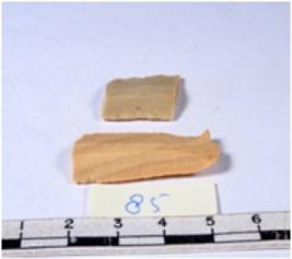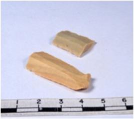 | Description / विवरण | A fragment of a rectangular shaped chert blade showing dorsal sides with sharp edges having smooth surface and triangular section. |