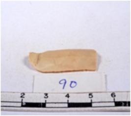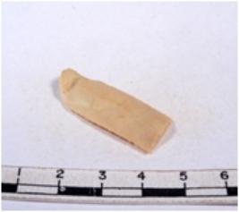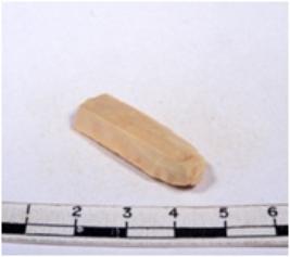 | Description / विवरण | A fragment of a rectangular shaped chert blade showing dorsal sides with sharp edges having smooth surface and triangular section. |