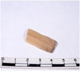 | Description / विवरण | A fragment of a rectangular shaped chert blade showing dorsal sides with sharp cutting edges having smooth surface and triangular section. |