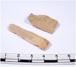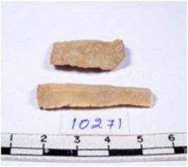 | Description / विवरण | A fragment of a rectangular shaped chert blade showing dorsal sides with sharp edges having smooth surface and triangular section. |