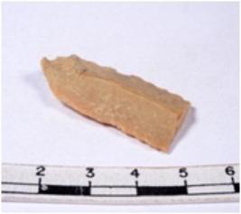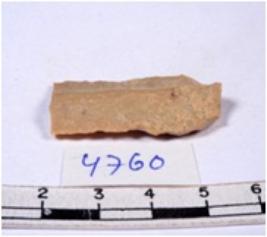 | Description / विवरण | A fragment of a rectangular shaped chert blade showing dorsal sides with sharp edges having smooth surface and triangular section. |