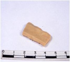 | Description / विवरण | A fragment of a rectangular shaped chert blade showing dorsal sides with sharp edges having smooth surface and triangular section. |