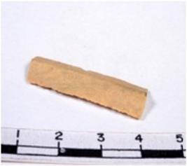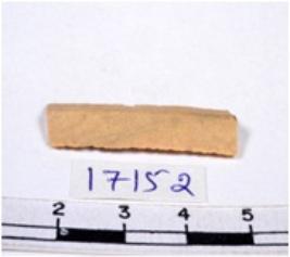 | Description / विवरण | A fragment of a rectangular shaped chert blade showing dorsal sides with sharp cutting edges having smooth surface and triangular section. |