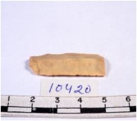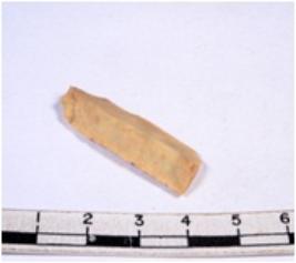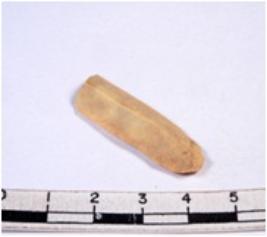 | Description / विवरण | A fragment of a rectangular shaped chert blade showing dorsal sides with sharp edges having smooth surface and triangular section. |