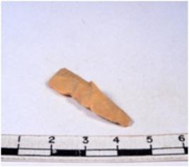 | Description / विवरण | A fragment of a rectangular shaped chert blade showing dorsal sides with sharp edges having smooth surface and triangular section. |