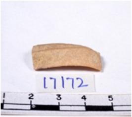 | Description / विवरण | A fragment of a rectangular shaped chert blade showing dorsal side with sharp cutting edges having smooth surface and triangular section. |