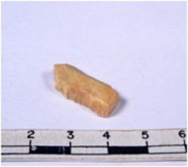 | Description / विवरण | A fragment of a rectangular shaped chert blade showing dorsal sides with sharp edges having smooth surface and triangular section. |