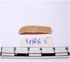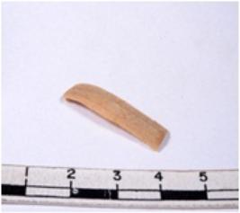 | Description / विवरण | A fragment of a rectangular shaped chert blade showing dorsal sides with sharp cutting edges having smooth surface and triangular section. |