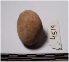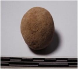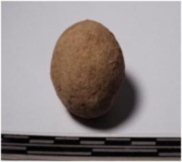 | Description / विवरण | A terracotta sling ball round in shape of smooth surface. |