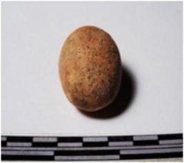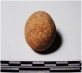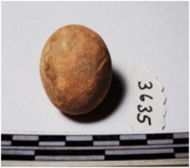 | Description / विवरण | A terracotta round in shape sling ball of smooth surface. |