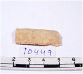 | Description / विवरण | A fragment of a rectangular shaped chert blade showing dorsal sides with sharp edges having smooth surface and triangular section. |