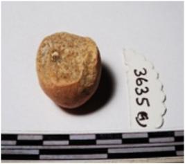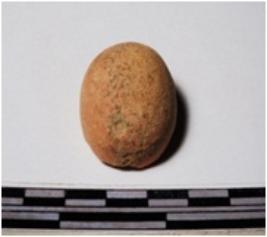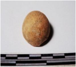 | Description / विवरण | A fragment of a terracotta round in shape sling ball circular in section of rough surface. |