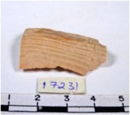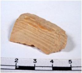 | Description / विवरण | A fragment of a oval shaped chert blade showing dorsal sides with sharp cutting edges having smooth surface and uneven section. |