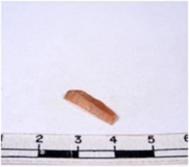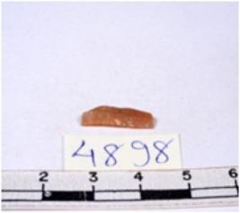 | Description / विवरण | A fragment of a rectangular shaped chert blade showing dorsal sides with sharp edges having smooth surface and triangular section. |