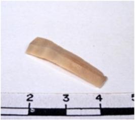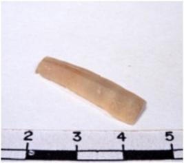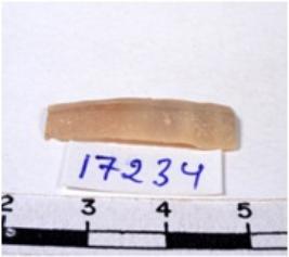 | Description / विवरण | A fragment of a rectangular shaped chert blade showing dorsal sides with sharp cutting edges having smooth surface and triangular section. |