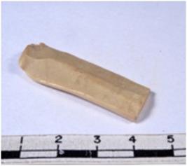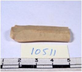 | Description / विवरण | A fragment of a rectangular shaped chert blade showing dorsal sides with sharp edges having smooth surface and triangular section. |