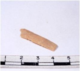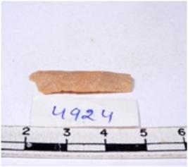 | Description / विवरण | A fragment of a rectangular shaped chert blade showing dorsal sides with sharp edges having smooth surface and triangular section. |