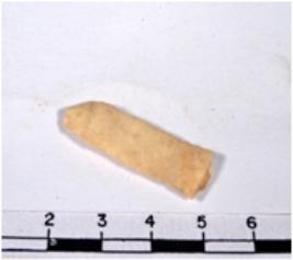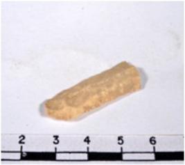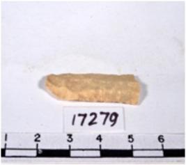| Description / विवरण | A fragment of a rectangular shaped chert blade showing dorsal sides with sharp cutting edges having rough surface and uneven section. |