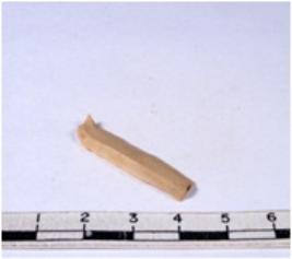 | Description / विवरण | A fragment of a rectangular shaped chert blade showing dorsal sides with sharp edges having smooth surface and triangular section. |
