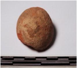 | Description / विवरण | A fragment of a terracotta sling ball, circular in section of rough surface. |