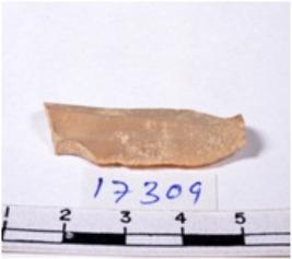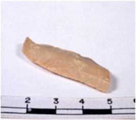 | Description / विवरण | A fragment of a rectangular shaped chert blade showing dorsal sides with sharp cutting edges having smooth surface and uneven section. |