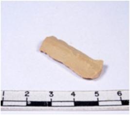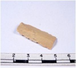 | Description / विवरण | A fragment of a rectangular shaped chert blade showing dorsal sides with sharp edges having smooth surface and triangular section. |