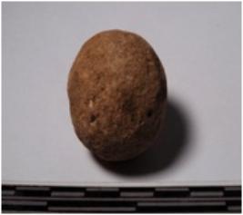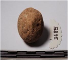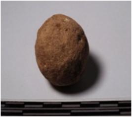 | Description / विवरण | A terracotta round in shape sling ball of smooth surface. |
