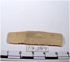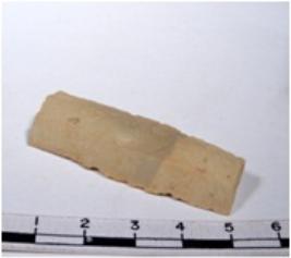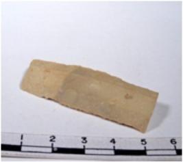 | Description / विवरण | A fragment of a rectangular shaped chert blade showing parallel sides with sharp cutting edges having smooth surface and oval like section. |