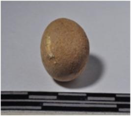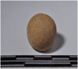 | Description / विवरण | A terracotta sling ball, round in shaped and smooth surface. |