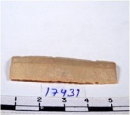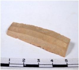 | Description / विवरण | A fragment of a rectangular chert blade showing dorsal sides with sharp cutting edges having smooth surface and triangular section. |