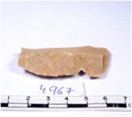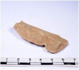 | Description / विवरण | A fragment of a rectangular shaped chert blade showing dorsal sides with sharp edges having smooth surface and triangular section. |