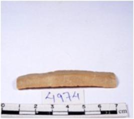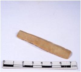 | Description / विवरण | A fragment of a rectangular shaped chert blade showing parallel sides with sharp edges having smooth surface and uneven section. |