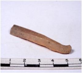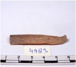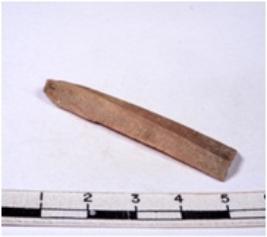 | Description / विवरण | A fragment of a rectangular shaped chert blade showing dorsal sides with sharp edges having smooth surface and triangular section. |