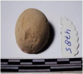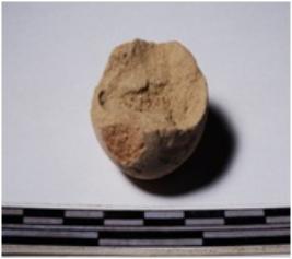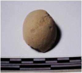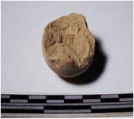 | Description / विवरण | A fragment of a terracotta sling ball globular in shape of smooth surface. |