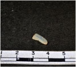 | Description / विवरण | A fragment of a rectangular shaped chalcedony blade showing dorsal sides with sharp edges having smooth surface and triangular section. |