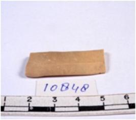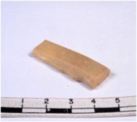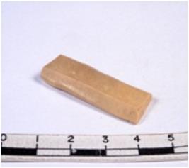 | Description / विवरण | A fragment of a rectangular shaped chert blade showing dorsal sides with sharp cutting edges having smooth surface and triangular section. |
