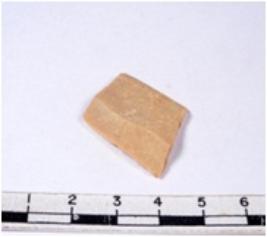 | Description / विवरण | A fragment of a rectangular shaped chert blade showing dorsal sides with sharp cutting edges having smooth surface and triangular section. |