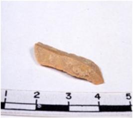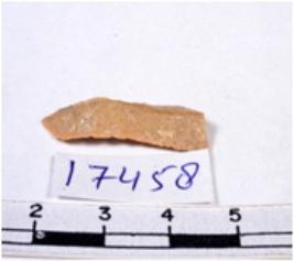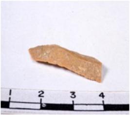 | Description / विवरण | A fragment of a rectangular shaped chert blade showing dorsal sides with sharp cutting edges having smooth surface and triangular section. |